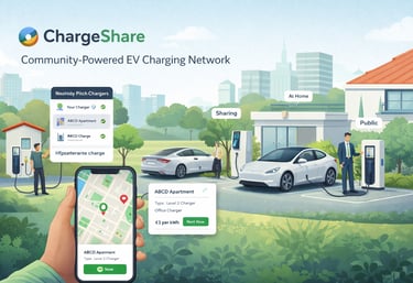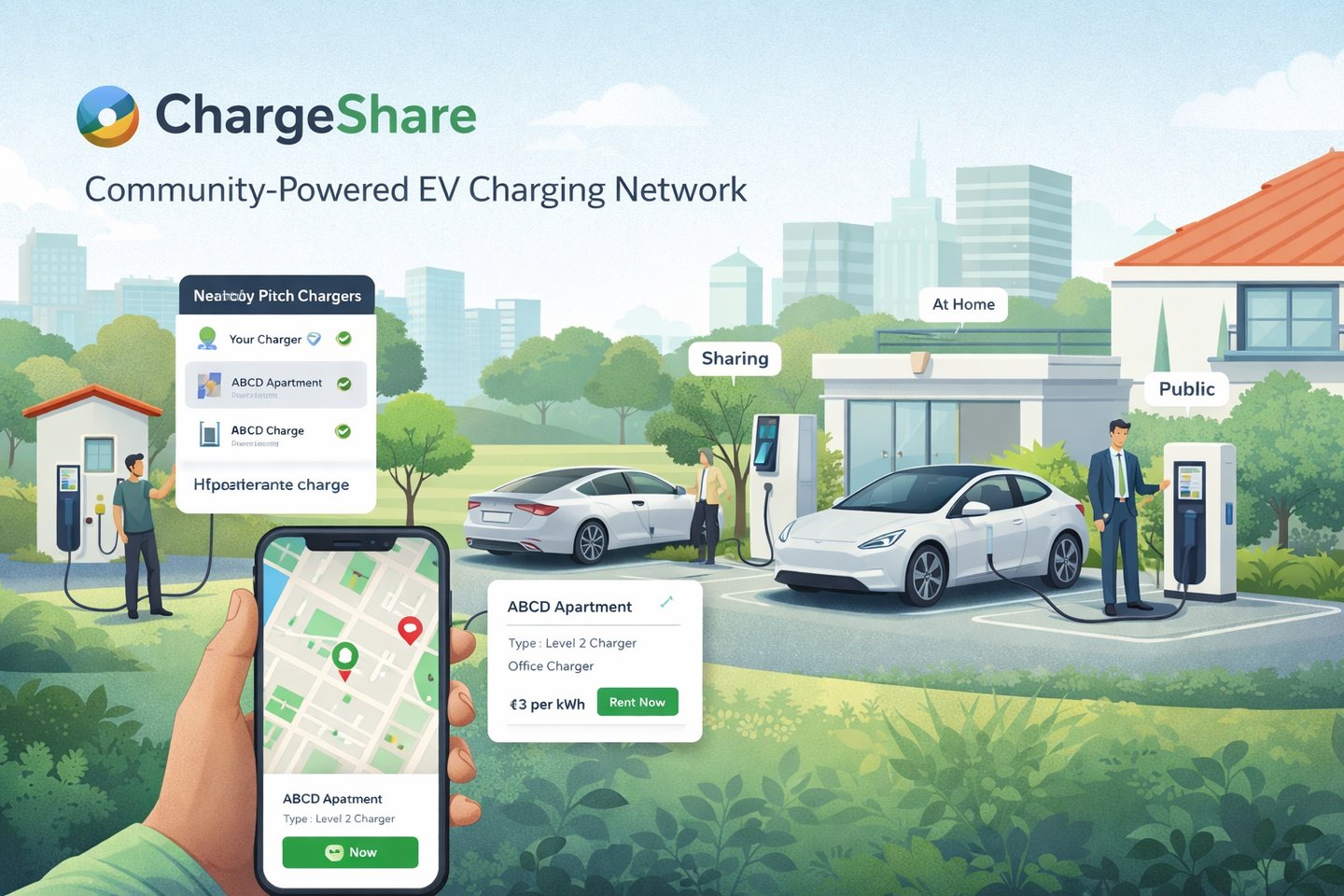 The rapid adoption of Electric Vehicles (EVs) is a significant step toward reducing carbon emissions and dependence on fossil fuels. However, the limited availability, uneven distribution, and high cost of public charging infrastructure remain major obstacles to widespread EV adoption, especially in semi-urban and residential regions. This paper presents EV ChargeShare, a community-driven electric vehicle charging platform that enables private charger owners to share their charging points with nearby EV users. The system provides map-based charger discovery, real-time availability monitoring, secure authentication, and a time-slot-based booking mechanism. A robust booking conflict resolution algorithm is implemented to ensure fair charger allocation during simultaneous booking attempts. The proposed platform improves charger utilization, reduces waiting times, minimizes range anxiety, and promotes sustainable electric mobility through decentralized infrastructure sharing.